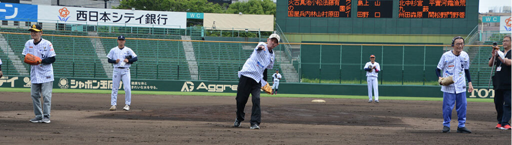 2025年5月23日(金)、北九州市民球場で株式会社ウチヤマホールディングスがスポンサーを務めるプロ野球チーム「北九州下関フェニックス」の公式戦が開催され、さわやか倶楽部が運営する介護施設のご入居者様3名が始球式に登板されました。