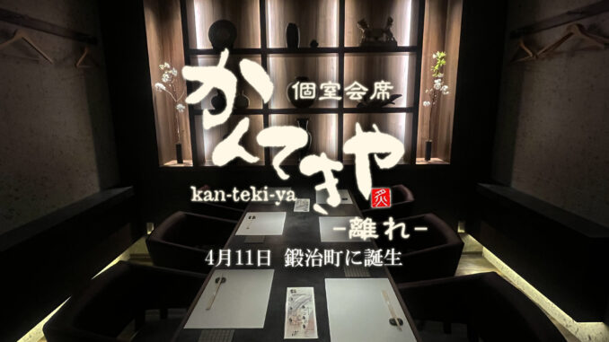 株式会社さわやか倶楽部が運営する「居酒屋かんてきや鍛治町店」に、ダブルネーム業態として新たに「個室会席 かんてきや-離れ-」が2026年4月11日(金)にオープンいたしました。