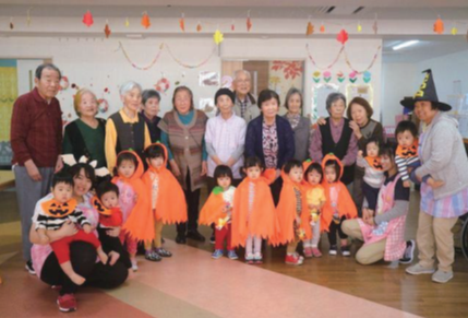 さわやかくきのうみの園児と、さわやかシーサイドくきのうみの入居者様でハロウィンパーティーを開催。園児はおばけに変身し、ハロウィン仕様の散歩車で、入居者様におかしをもらいまに行きました。