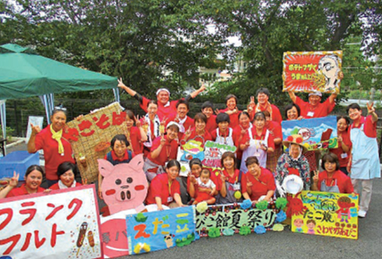 さわやかあびこ館にて、地域の方々、ご家族様、たくさんの方にご来館いただき、夏祭りを開催。やきそば、フランクフルト、射的、ヨーヨー釣、輪投げ、盆踊りとさまざまな催しを通して、地域との交流を図りました。