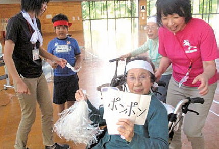 さわやか桜参番館とさわやか愛の家さくら館の開所1周年を記念し、体育館を貸し切り、運動会を開催しました。パン食い競争、借り物競争、応援合戦、などおなじみの競技で、入居者さま、ご家族、子供たち、職員の笑顔が満開で大成功の運動会となりました。