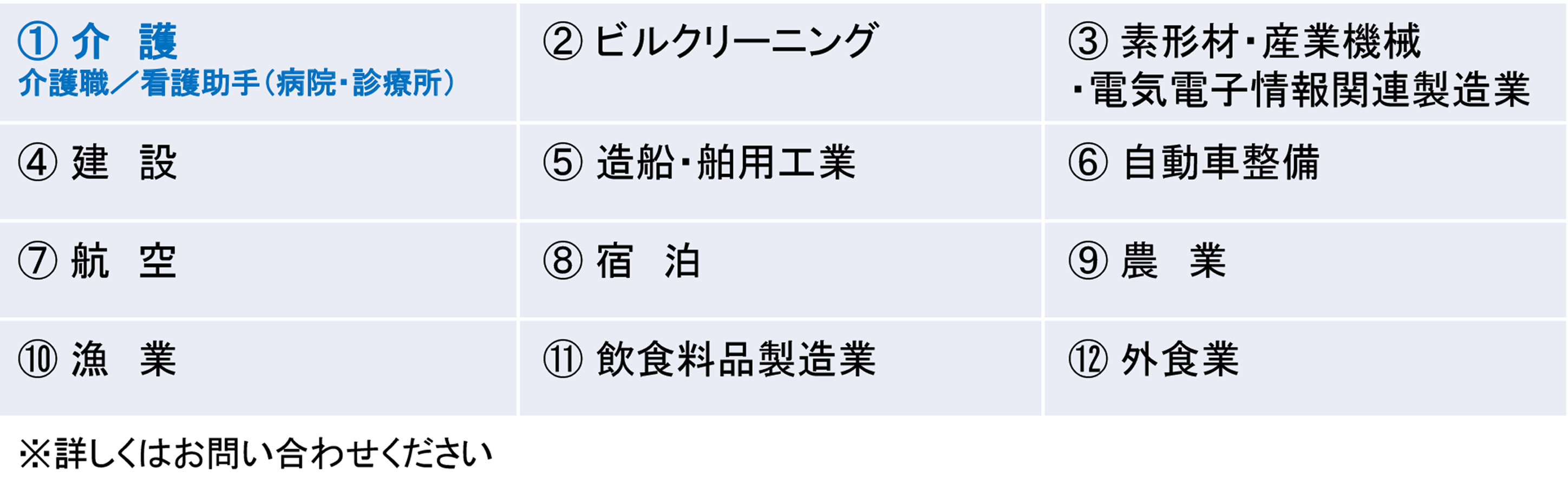 介護事業所、医療施設をはじめ特定技能対応職種の外国人人材のご紹介が可能です。