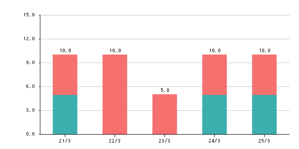 | 年間 | 10.0 | 10.0 | 5.0 | 10.0 | 10.0 |